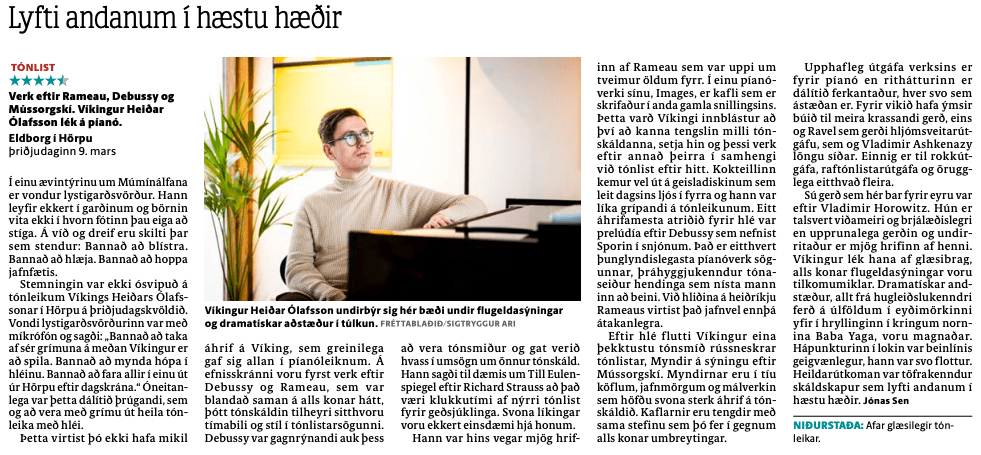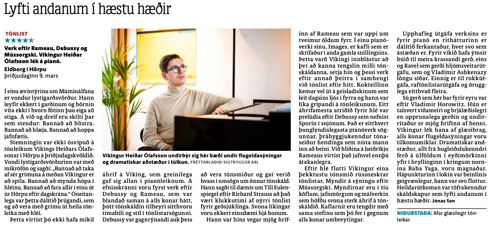 Verk eftir Rameau, Debussy og Mússorgskí. Víkingur Heiðar Ólafsson lék á píanó.
