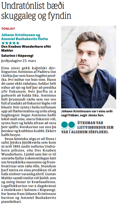 Des Knaben Wunderhorn eftir Mahler. Jóhann Kristinsson og Ammiel Bushakevitz fluttu.