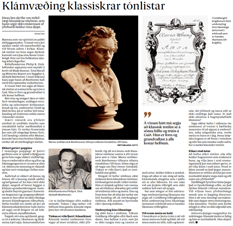 Þetta eru þungar vangaveltur. En mikilvægar. Klassísk tónlist er falleg og hún er innihaldsrík. Hún skiptir máli.