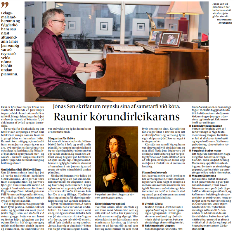 Ég var rekinn úr kórnum. Á næstu tónleikum hans var annar undirleikari. En hann var víst enn verri en ég, svo ég var ráðinn til baka. Mér var þó stanslaust strítt á æfingum eftir þetta, svo jaðraði við einelti. Alltaf fyrir tónleika var ég spurður: „Jónas, hvernig er vindáttin?“ Síðan var hlegið kvikindislegum hlátri.