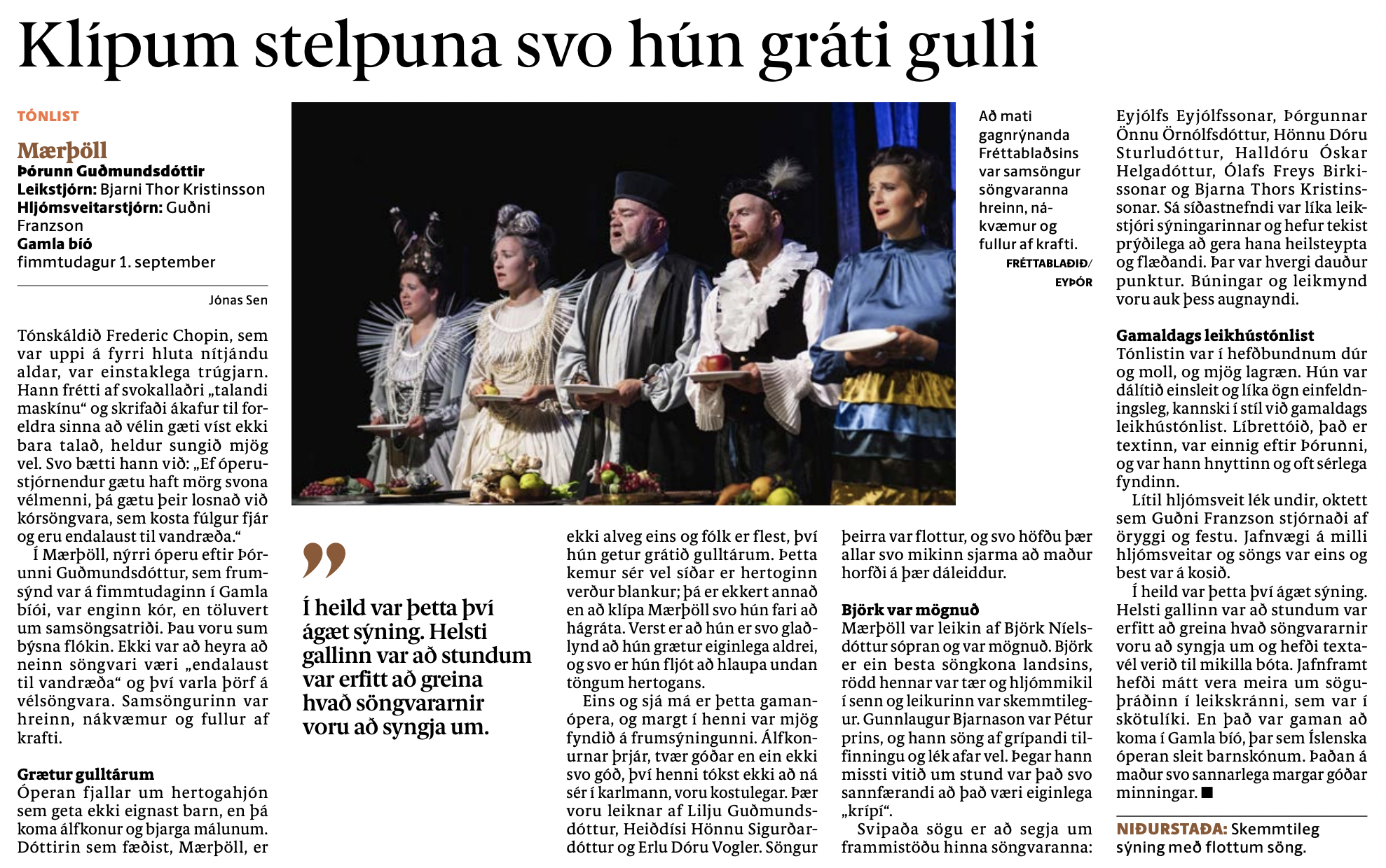 Mærþöll. Tónlist og texti: Þórunn Guðmundsdóttir. Leikstjórn: Bjarni Thor Kristinsson. Hljómsveitarstjórn: Guðni Franzson.