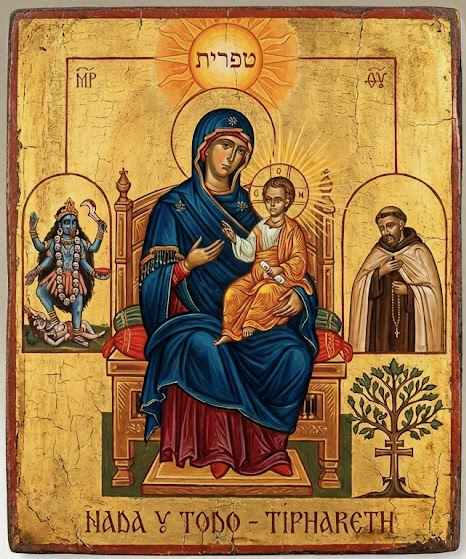 And in the deepest mystery of the practice, all this merges into a powerful alchemy. We draw wisdom from the East, from the Ramakrishna order, and invoke the power of Kali, the fierce mother who severs the head of the ego and burns away illusions. Yet, we do this while holding the image of the Virgin Mary in our hearts.